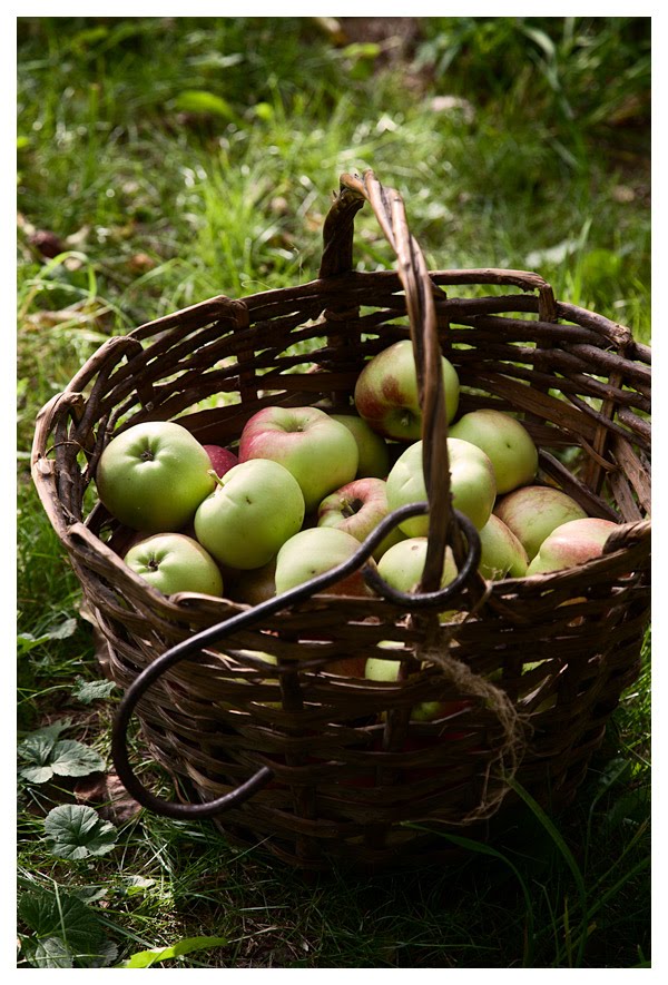 När vi var i Kivik sist var flera av äppelträden färdiga för plockning, så vi tog varsin korg och fyllde ett par kassar med äpplen att ta med oss hem till Öland.
