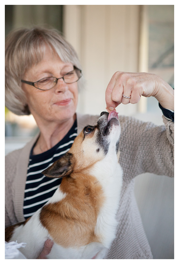Här har vi någon som blir bortskämd! Mamma matar Bally med leverpastej…