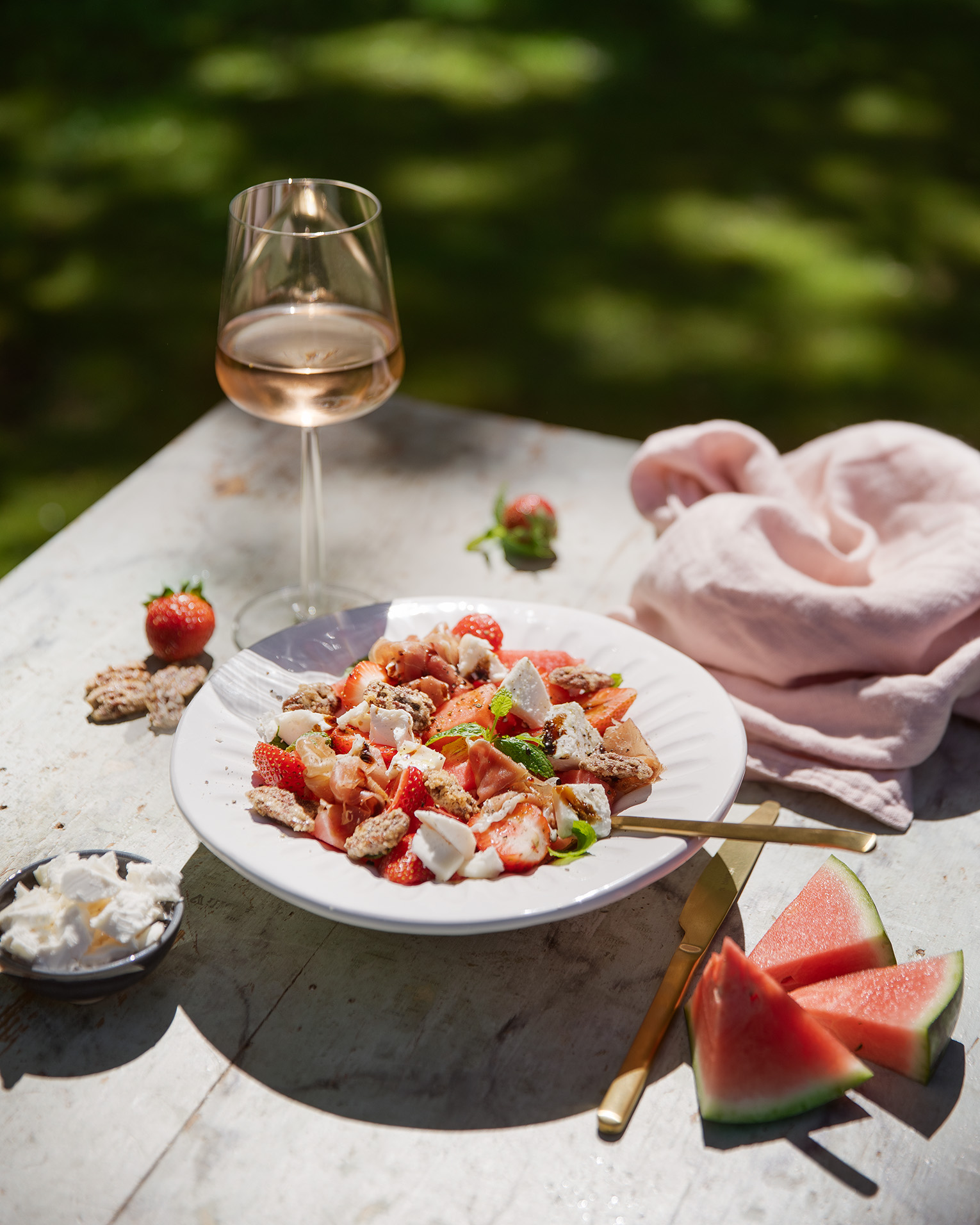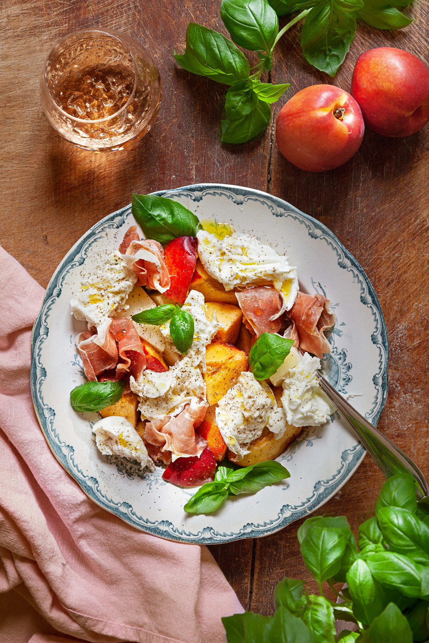 Sommarsallad med melon, nektarin, parma och mozzarella