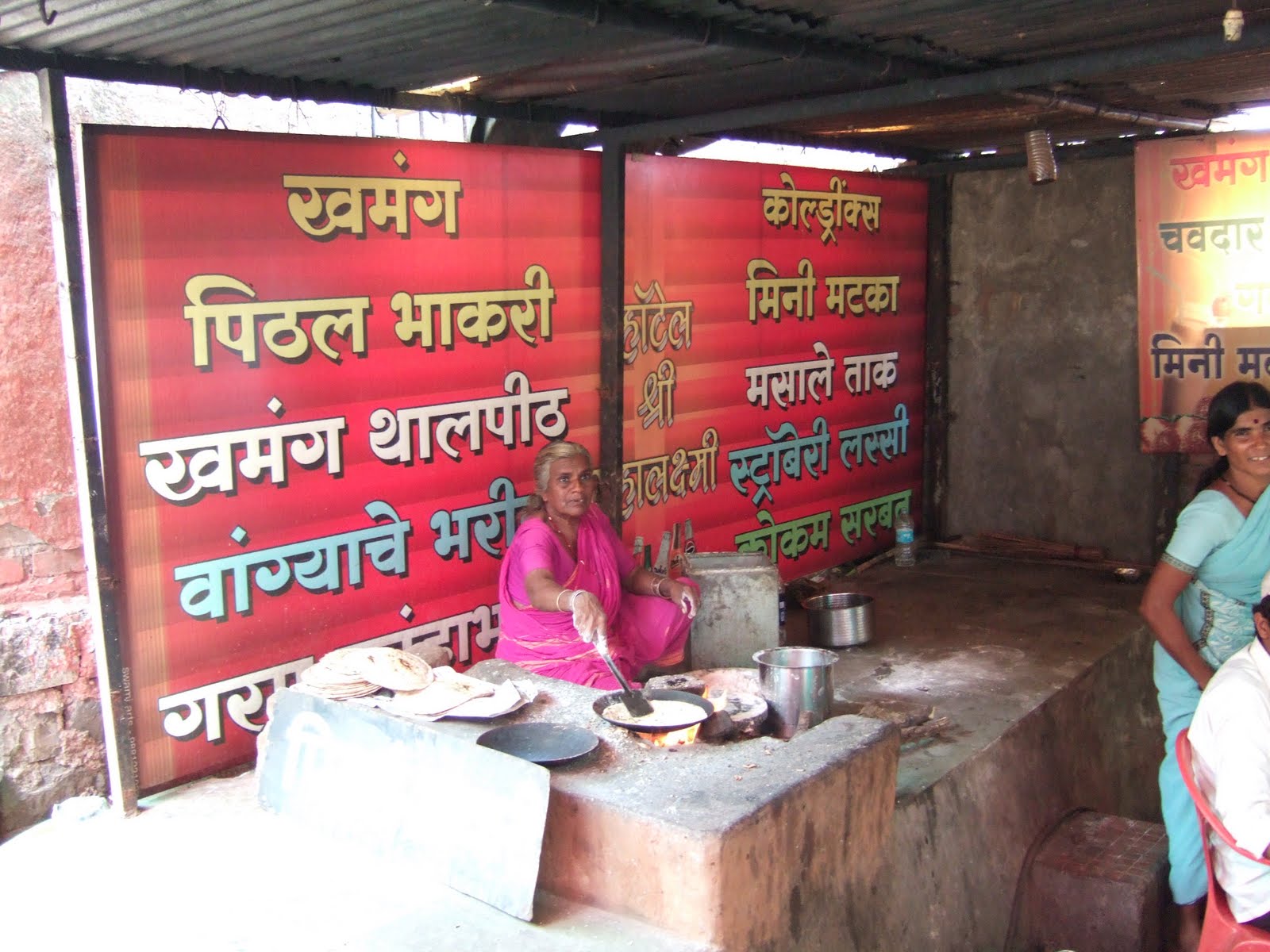 De tunnbrödsliknande chapatibröden steks på samma sätt som pannkakor. Den här kvinnan satt och stekte chapati på en restaurang som låg halvvägs upp i en gammal fästning en bit norr om Bombay.