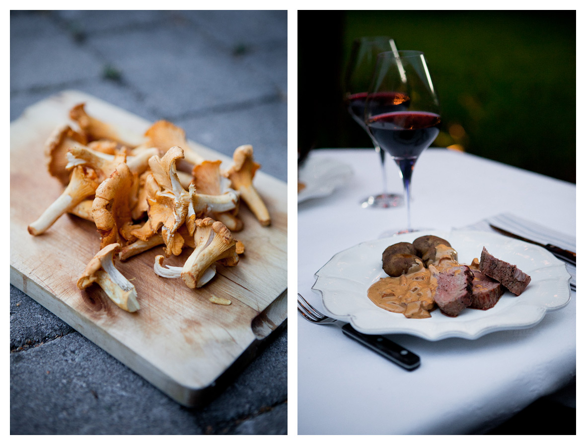 Efter en eftermiddag i solen i trädgården lagade Olof kvällsmat – grillad oxfilé med kantarellsås och potatis.