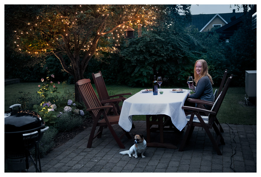 En alldeles underbar dag! Hoppas att det inte dröjer länge till nästa. (Om ni undrar om vi verkligen har kvar julbelysningen i trädet så är svaret – Ja, det har vi. Vi hävdar att det ger en sydeuropeisk kvällsstämning under sensommaren.)