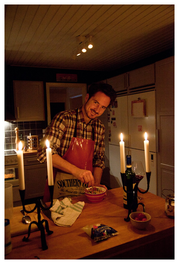 Fredagkvällen i afton är nästan identisk med förra fredagen, det enda som har bytts ut är maträtten och stället i köket som Olof står på. Just nu står han och lagar fredagsfavoriten pasta med tomatpesto och buffelmozzarella…