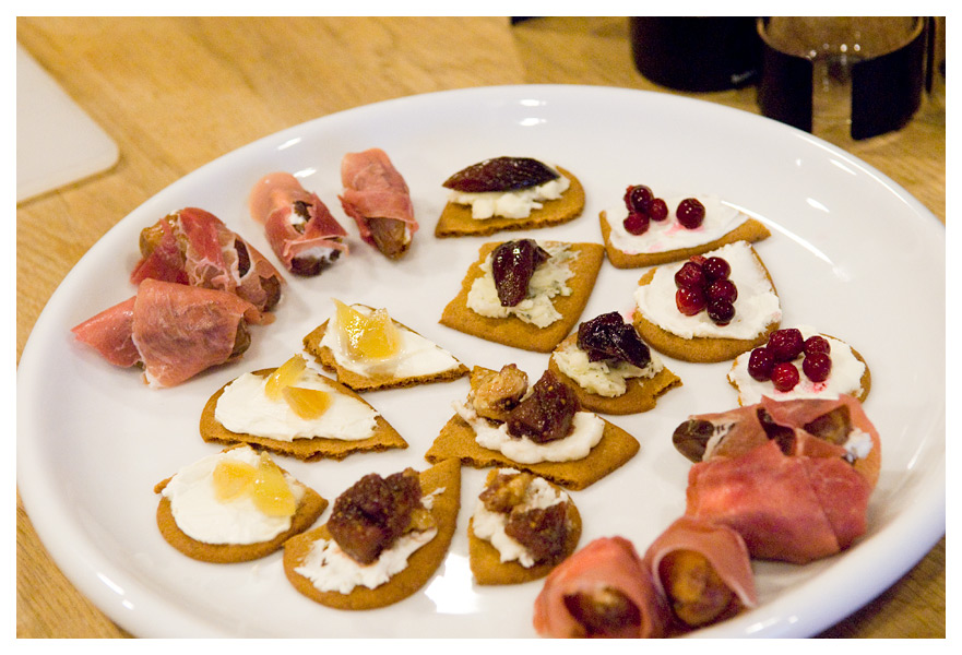 För att inte tala om alla Emmys goda plocksaker! Det var pepparkakor med färskost och syltad ingefära, och med hemmagjord fikonmarmelad och lingon, och färskost- och getostfyllda dadlar inlindade i parmaskinka.