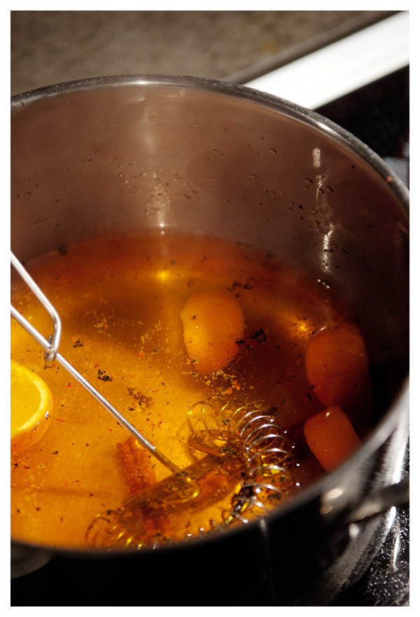 Jag kokade ihop en omgång vitvinsglögg med saffran. Himla tacksam glögg, det där, den blir ju klar på nolltid.