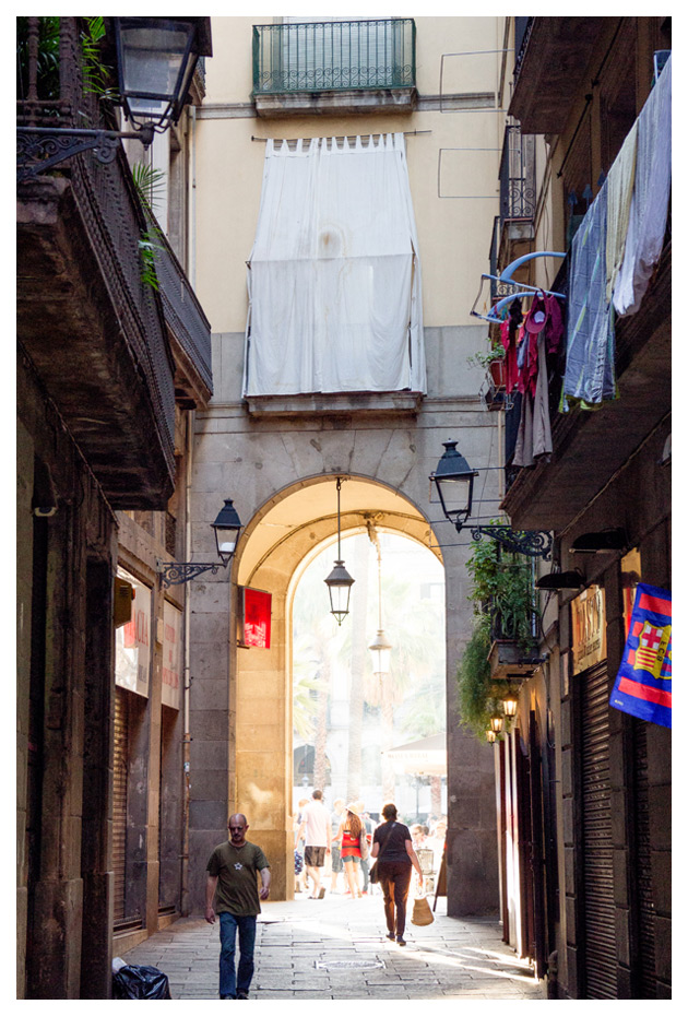 Men tillbaka till Barrio Gótico, och det stora torget Plaza Reial som ligger i stort sett precis runt hörnet från vår första lägenhet.