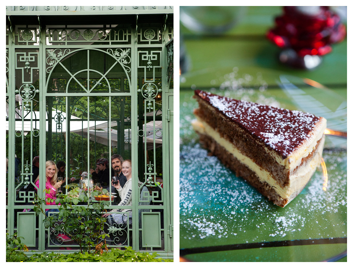 Man kunde antingen sitta utomhus eller i det här inglasade rummet. Vi var som synes taggade till tänderna. Det var ju matdags!