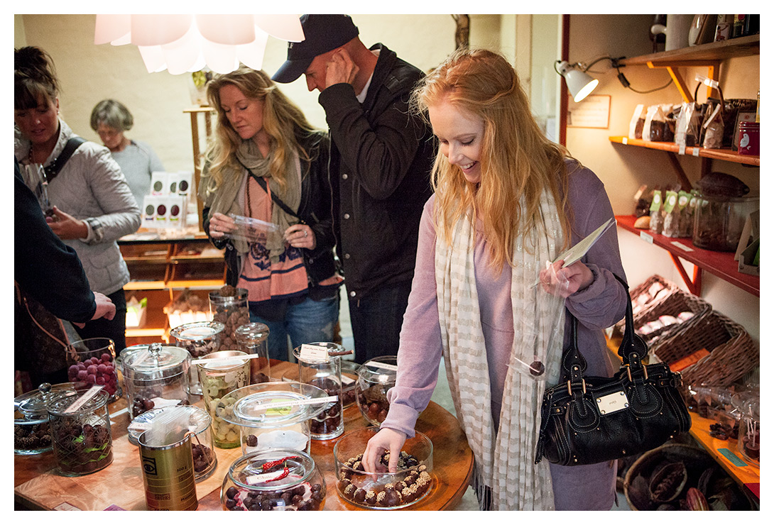En av butikerna var Lödahus Chokladkultur. Ojojoj vilka goda praliner de hade, de gick inte av för hackor! Här har jag lägligt nog fastnat på bild med handen i burken. Ofint av mig, men till mitt försvar vill jag hävda att jag faktiskt handlade alla praliner som jag tafsade på.