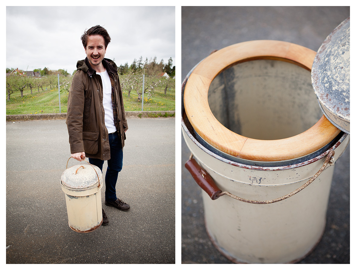 Olof gjorde minsann ett riktigt roligt och ovanligt fynd; den här charmigt risiga hinken som vi tänker plantera några trevliga blommor i. Hinken visade sig dock vara något helt annat, då den var utrustad med en sittring i trä.