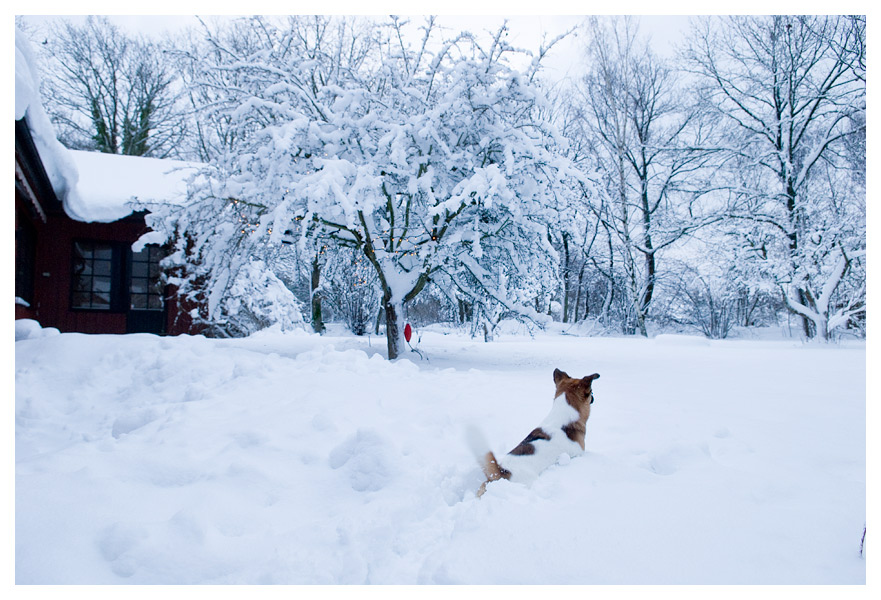 Synd det inte var husse som skuttar fram i snön, det hade väl varit en härlig syn!