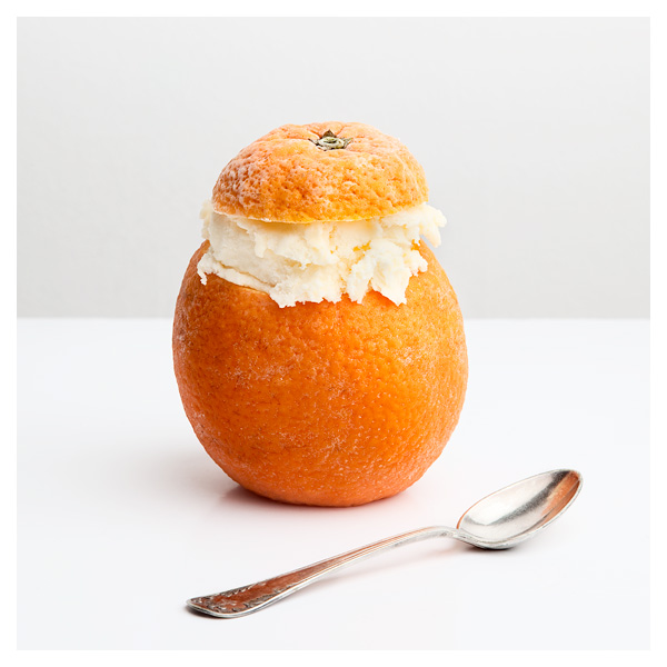 Den här glassen rörde jag ihop som ett experiment, jag tänkte att ”apelsinglass kan man ju inte misslyckas med”, och det blev mycket lyckat! Idén att trycka ner glassen i en apelsin är väl inte direkt ny, det är väldigt poppis på spanska caféer, men inte lika vanligt i Sverige. Men spanjorerna har ju så mycket apelsiner att de nästan kan bada i dem. Eller okej, kanske inte, men de har väldigt gott om apelsiner i alla fall. Av den här omgången glass får man ut ca 4 portioner, och den smakar otroligt fräscht. Jag kommer att göra den ofta i sommar!