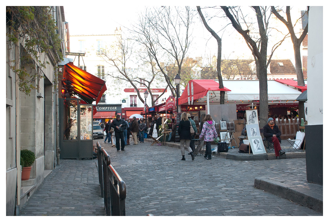 På torget vid Sacre Coeur konkurrerar eliten av gatukonstnärer om turisternas pengar och fåfänga. Syrran och jag stod över den här gången, vi har fortfarande kvar våra blyertsteckningar som gjordes av oss häruppe när vi var tonåringar. Inte för att vi ser likadana ut idag, men vi vill gärna tro det själva.