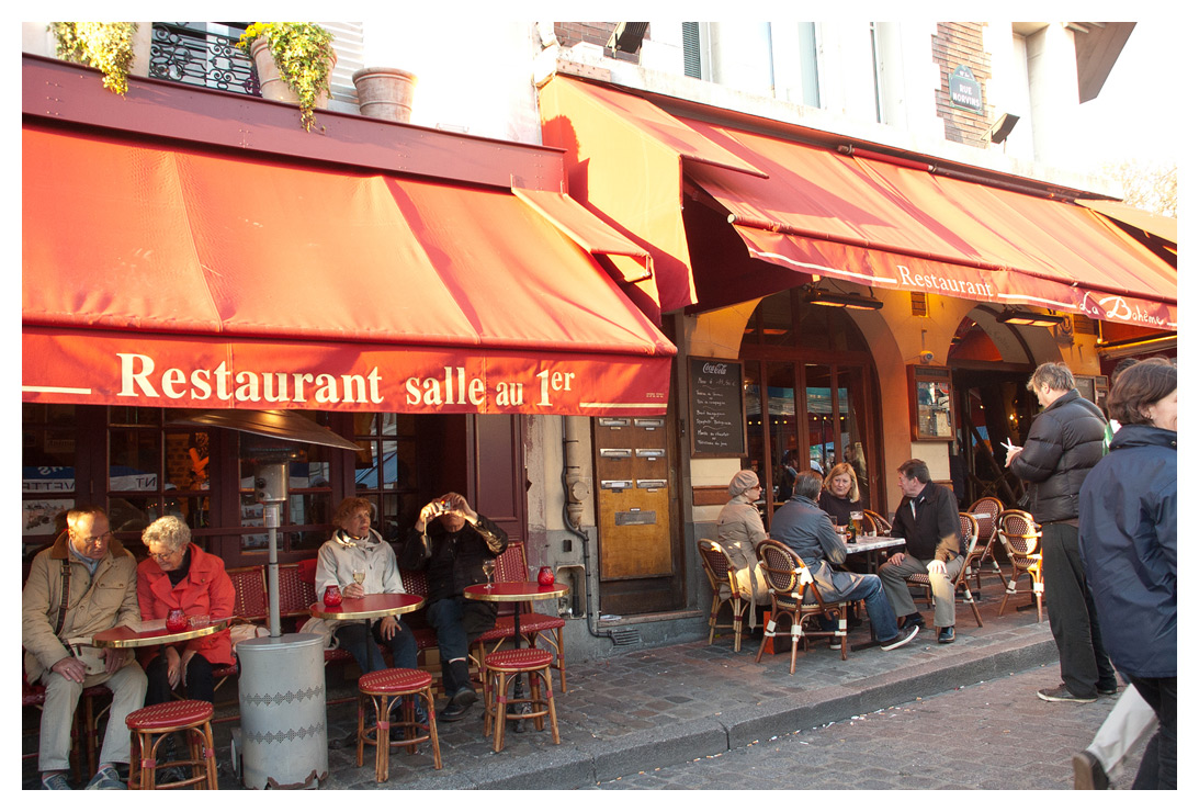 Det område i Paris som jag (och säkerligen många andra) tycker allra mest om, är Montmartre. Här uppfylls alla förväntningar man har på franska stadsmiljöer; de färgade markiserna, de rutiga dukarna, uteserveringarna på gatan…