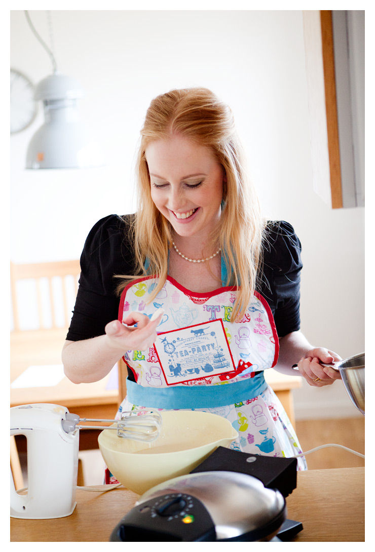 Hello gorgeous! Du ser ut som en snygg hemmafru. Du kanske borde ha ett par fina matchande grytvantar så du slipper brännskador. Eller varför inte dina glassvantar 🙂 Glass och våfflor är ju gott ihop.